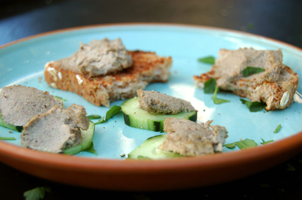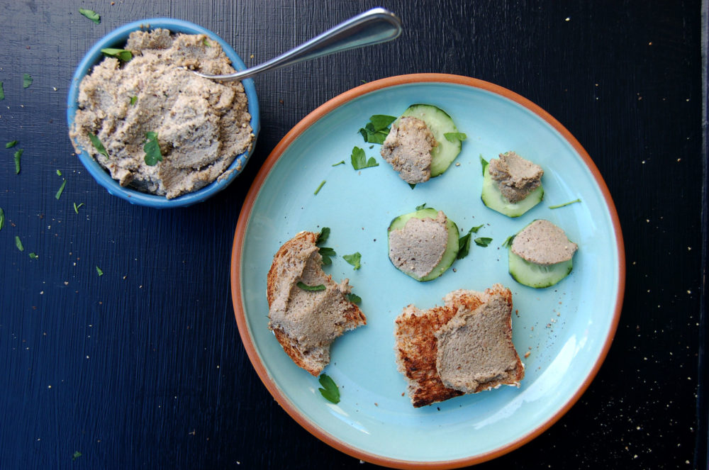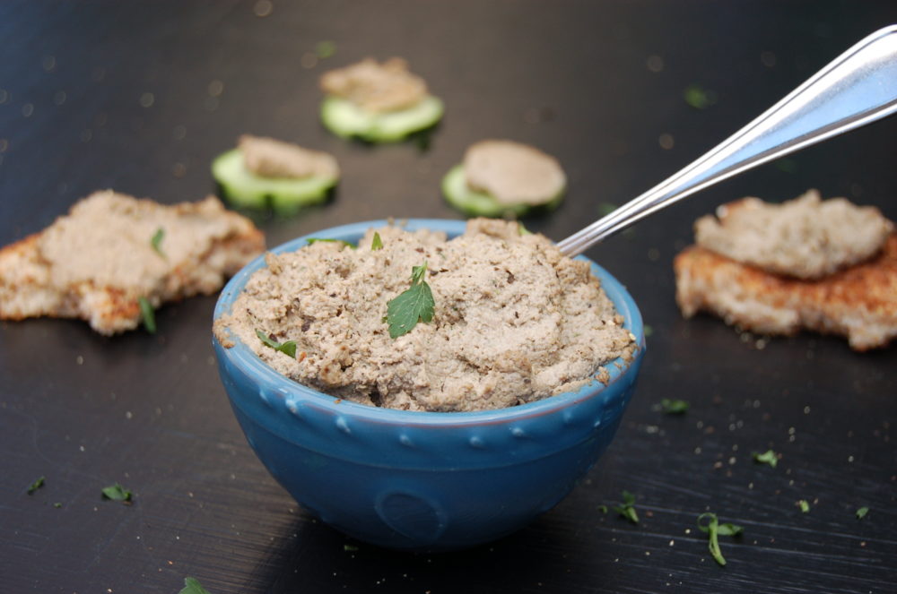 Today’s recipe is pretty much the best thing since…..Chicken Liver Pate, sans the chicken.
